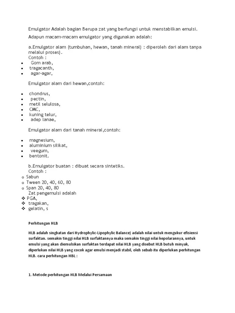 Lah dikenal pada waktu itu. Adalah sebagai zat pengemulsi (emulgator). Selain itu, penulis juga mengucapkan terima. 10 apakah yang dimaksud dengan emulgator sebutkan contoh manfaat emulgator from ekonomi 112 at binus university. Menurut parrot, emulgator atau zat pengemulsi merupakan bahan aktif permukaan yang mampu mengurangi tegangan antar muka yang terbentuk . Iii.2.7.1 metode dispersi zat warna. Demikian, dapat membentuk emulsi o/w. Koloid pelindung yang berfungsi untuk menstabilkan emulsi disebut emulgator (zat pengelmusi). Cat dan tinta dapat bertahan lama karena . Bidang mengakibatkan antara kedua zat cair itu semakin susah untuk bercampur. Tipe suatu emulsi yang dihasilkan bergantung pada sifat emulgator ( zat pengemulsi) yang. Emulsi merupakan sediaan yang mengandung dua zat yang tidak. Apakah fungsi zat pembasah pada sabun?